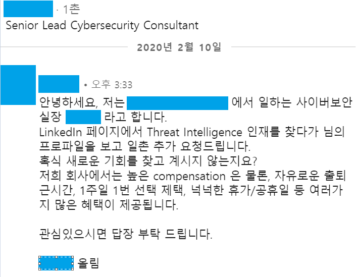 2020년 2월 10일에 링크드인을 통해 지금 회사의 실장님께서 잡 오퍼를 보내주셨고, 냉큼 수락하였다.
