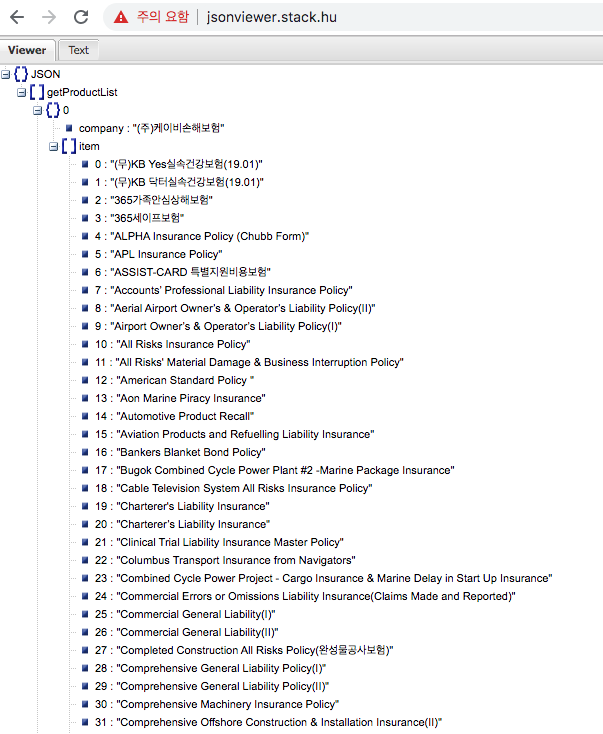 product - 예금자 보호 금융 상품 중, 증권/은행 상품을 제외한 보험 상품 정보